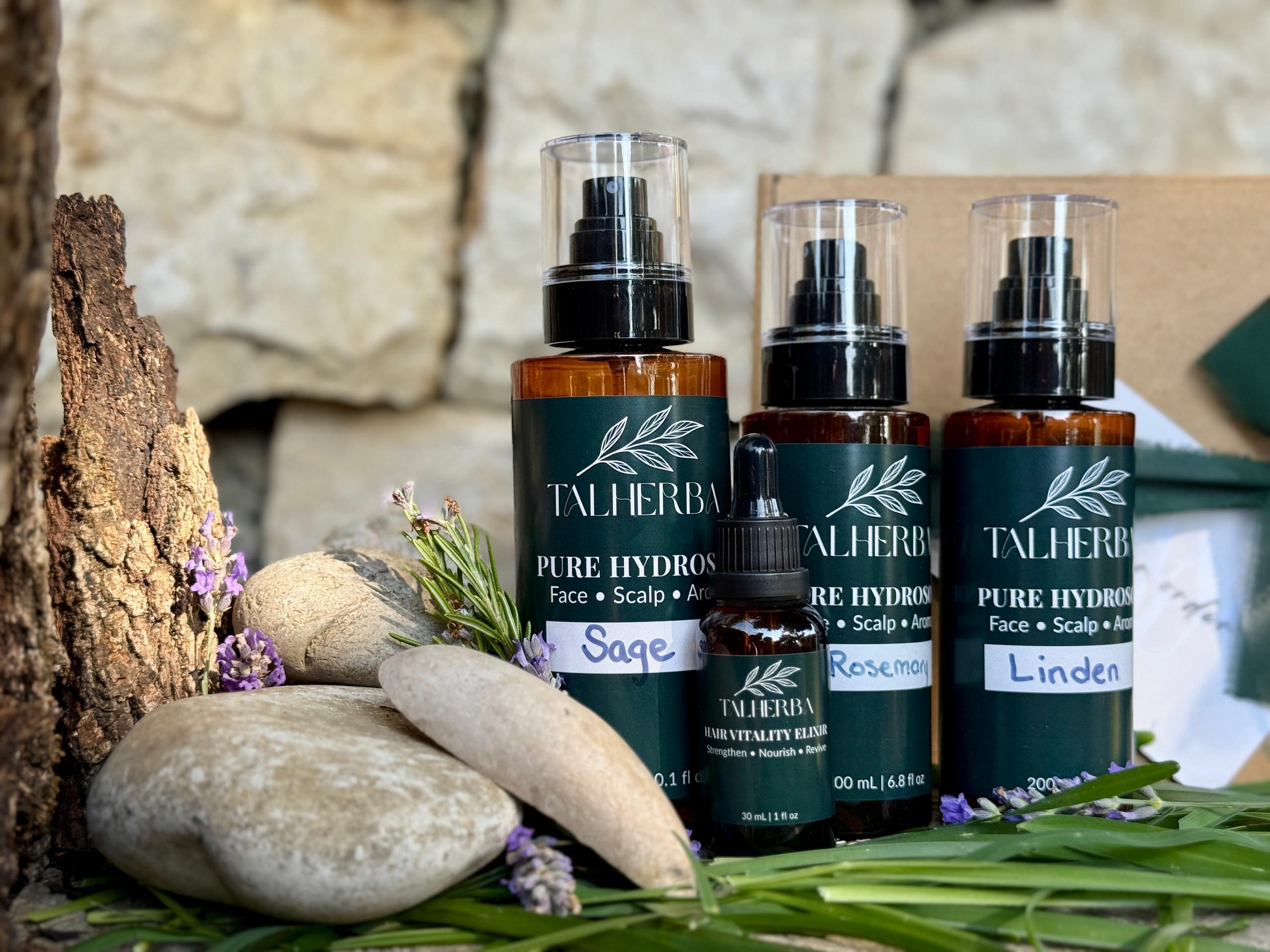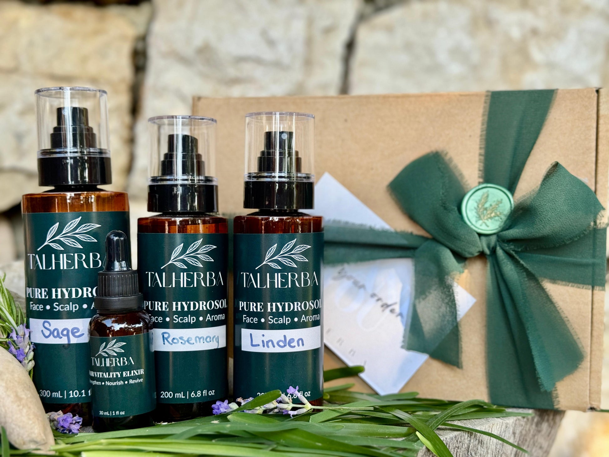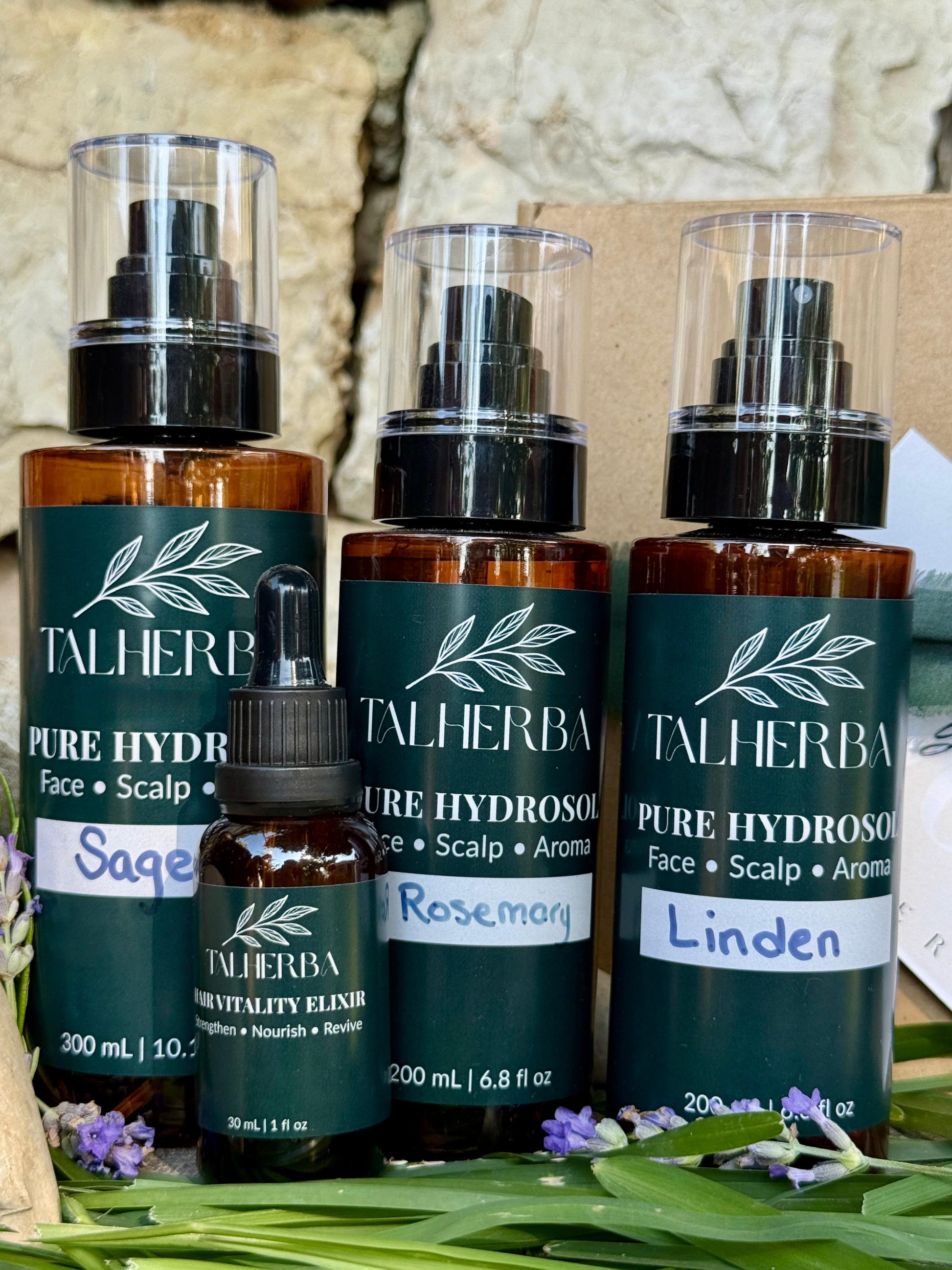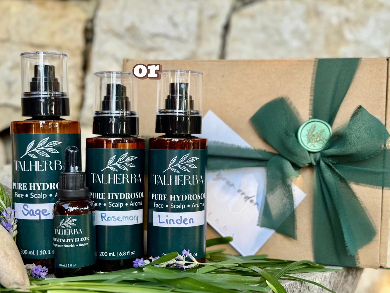 مستلزمات أساسية للرجال - تتضمن إكسير الشعر واللحية 30 مل + ماء زهرة المريمية 300 مل + ماء زهرة 200 مل (اختر بين زهرة الزيزفون أو إكليل الجبل) + علبة هدايا مجانية